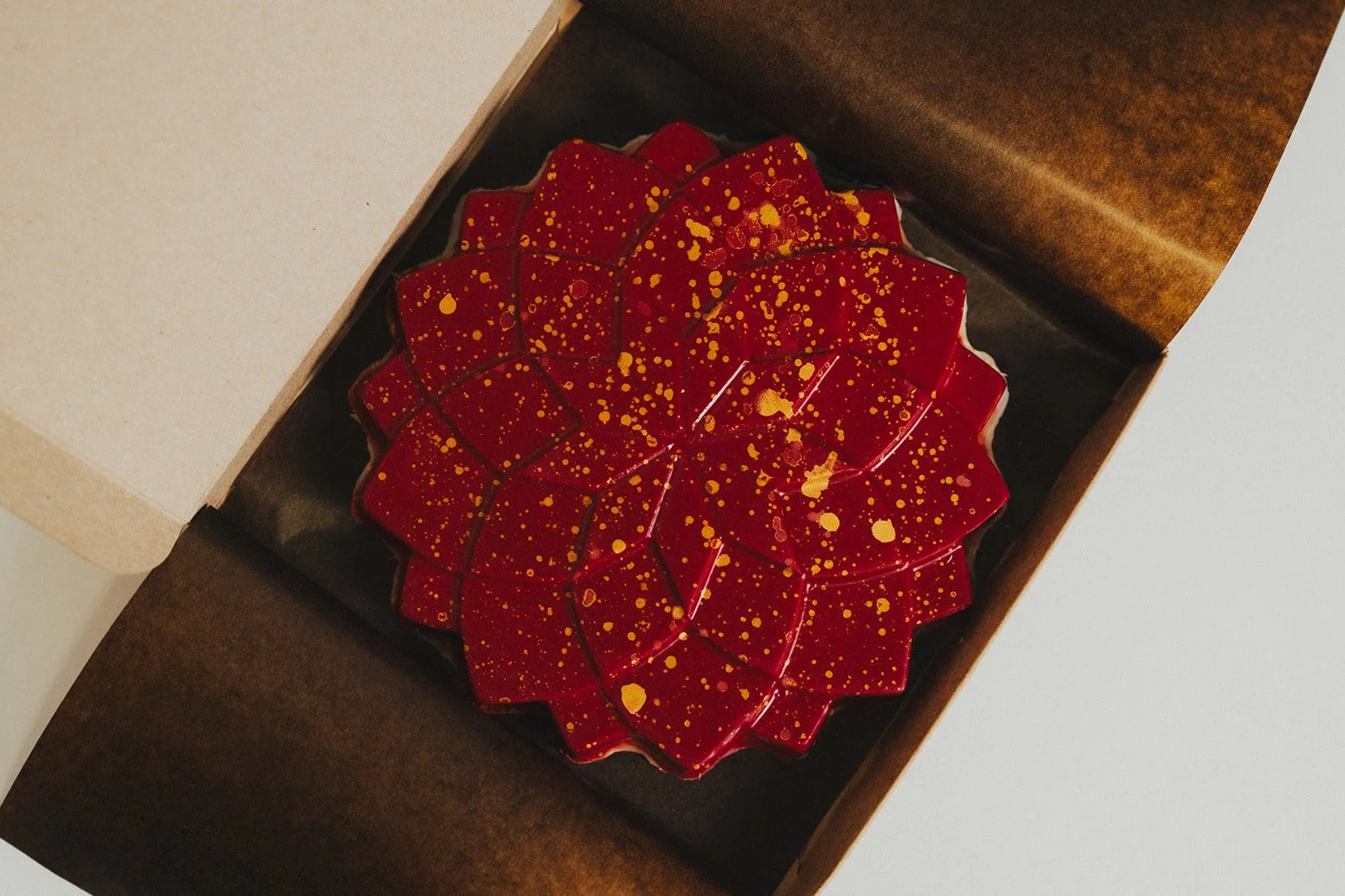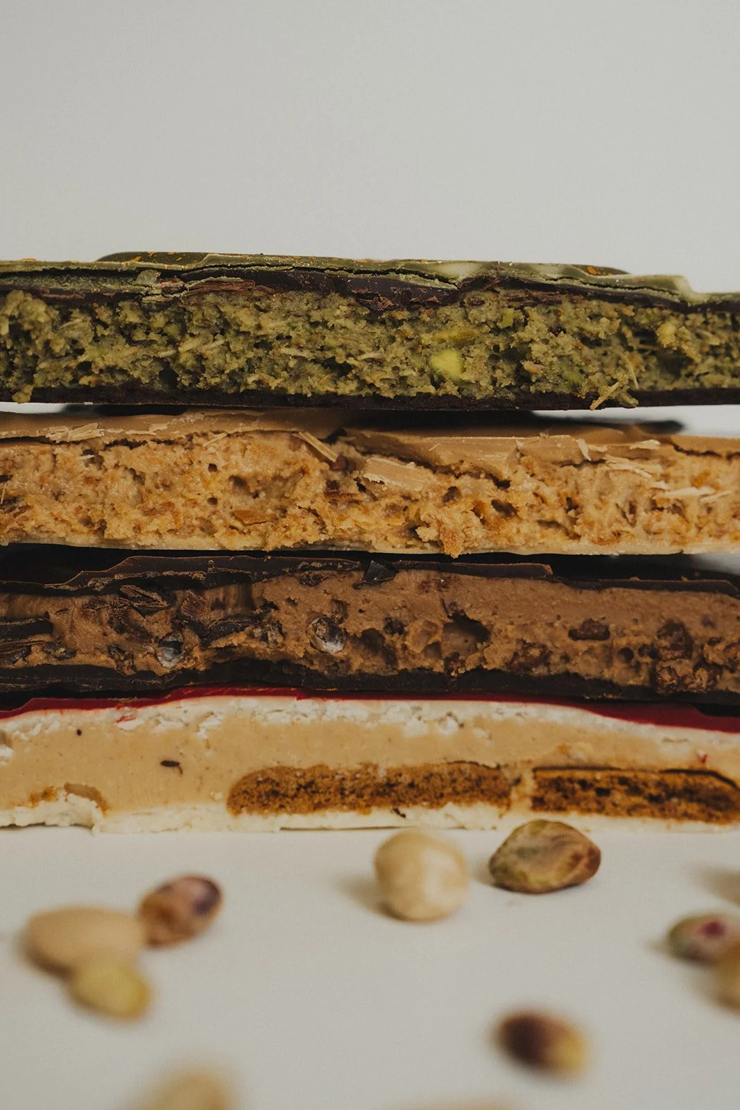 Cheesecake cremoso de turrón Jijona, base de galleta Lotus, decorado con puntos de mascarpone y turrón Jijona.